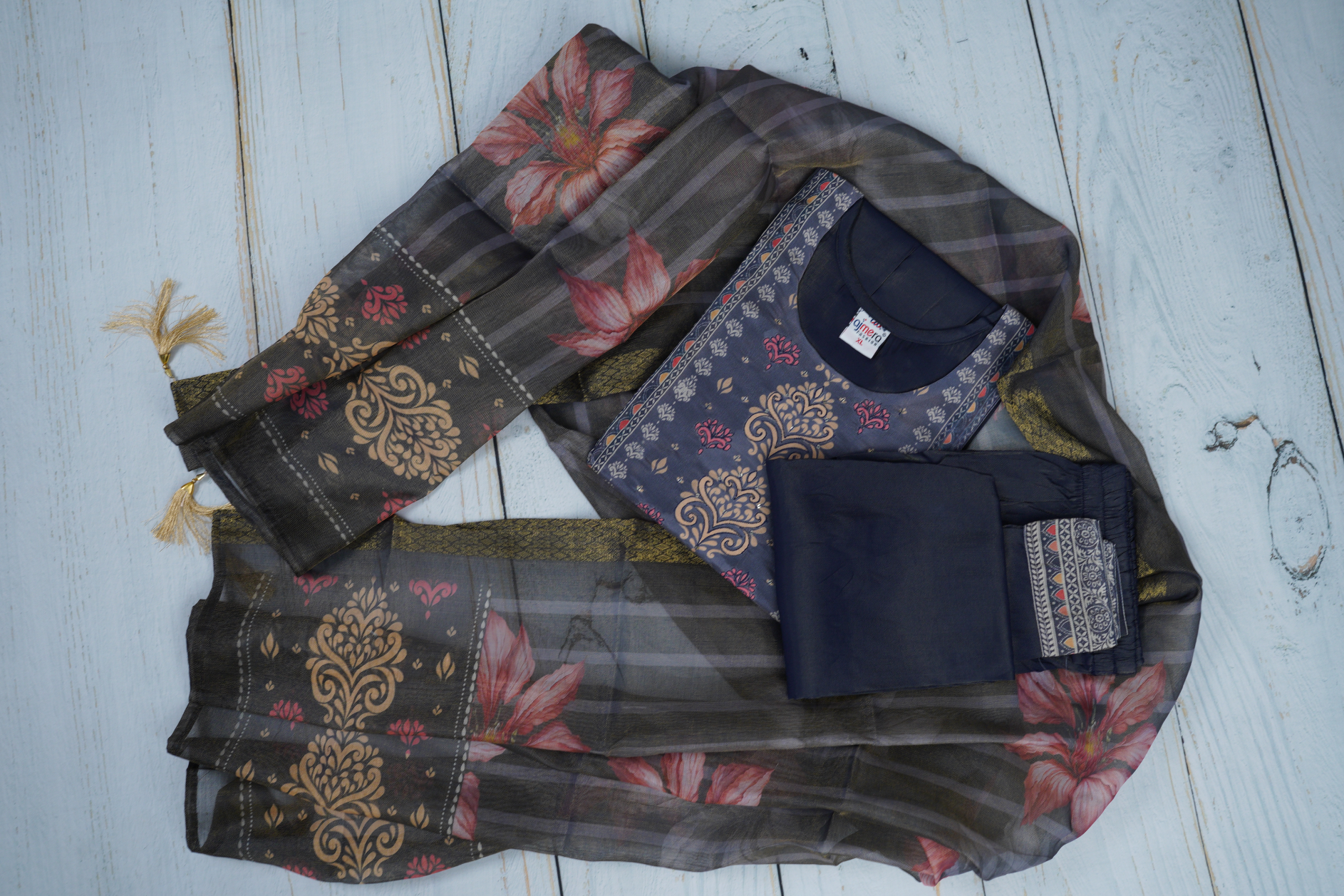 Exuding timeless elegance, this navy blue base unstitched dress material is a must-have for your ethnic collection. The rich fabric and intricate designs bring out the perfect blend of tradition and style. Paired with a beautifully crafted dupatta, it adds the oomph factor to your look, making it ideal for traditional gatherings like Diwali, Navratri, or family pujas. Unleash your creativity and tailor this versatile piece to suit your unique style, ensuring you turn heads with grace and charm at every special occasion.